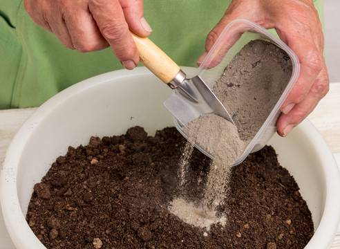 - In die obere linke Ecke der Windel müssen Sie einen Löffel angefeuchteten, nahrhaften Bodens legen.