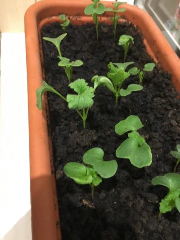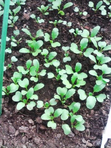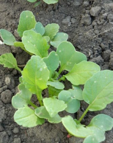 Die ersten Triebe von Rettich erscheinen 4-5 Tage nach der Aussaat. Während dieser Zeit beginnt der Spross, Düngemittel vom Wurzelsystem aktiv aufzunehmen und Nitrate in den Früchten anzusammeln. Es ist heutzutage optimal, organische Düngemittel einzuführen. Nährstoffmischungen werden beim nächsten Gießen an der Wurzel, vorzugsweise abends, angewendet.
