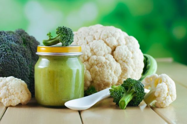Sie können das Produkt einem Kind nach 6 Lebensmonaten anbieten. Da das Gemüse viel Ballaststoffe enthält, werden frühere Kohlblütenstände möglicherweise einfach nicht vom Körper des Kindes aufgenommen. Zum ersten Mal wird das Produkt in gekochter Form in die Ernährung des Babys aufgenommen und zu einem Püreezustand zerkleinert. Ein frisches Gemüse kann einem Kind frühestens nach 8 Monaten und nur in einer Menge von nicht mehr als 1 Teelöffel angeboten werden.