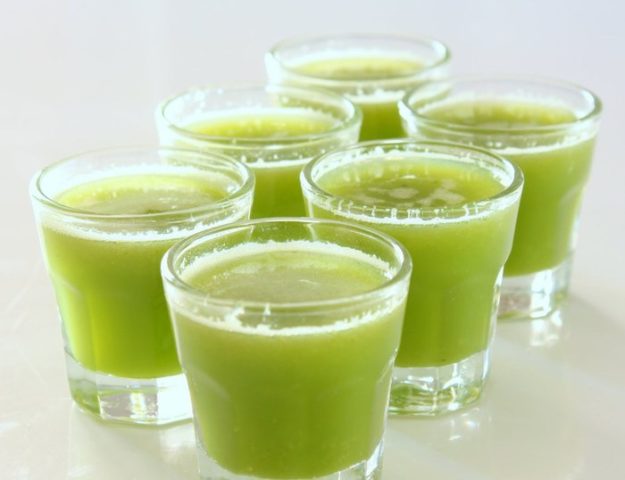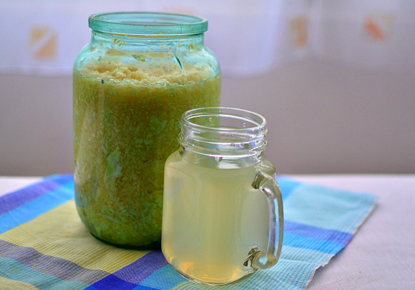 Innerhalb von 2 Tagen lässt das Gemüse den Saft heraus und danach ist die Sole gebrauchsfertig. Sie müssen es zweimal täglich auf leeren Magen 100 ml einnehmen, die gesamte Behandlung wird 2 Wochen lang fortgesetzt.