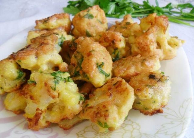 Das Gemüse wird besonders für seine schnelle Zubereitung geschätzt. Zum Beispiel kann Blumenkohl im Teig als Dekoration für alltägliche und festliche Tische dienen, und es dauert ungefähr 15 Minuten, um ein Gericht zuzubereiten.