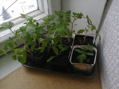 Wenn die ersten Tomatensämlinge als rosa Spam erscheinen, zeigen die Bewertungen auf dem Foto, dass die transparente Beschichtung entfernt werden muss und die Kartons mit Tomatensämlingen an einem ausreichend beleuchteten Ort, jedoch ohne direkte Sonneneinstrahlung, aufgestellt werden müssen. Die angenehmste Temperatur für das Wachstum von Sämlingen liegt bei +23 Grad. Von Zeit zu Zeit muss der Boden sorgfältig mit einer Sprühflasche angefeuchtet werden, damit keine Wassertropfen auf die noch empfindlichen Blätter von Tomaten fallen.