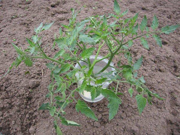 - Einen halben Monat nach dem Umpflanzen von Tomaten in die Beete muss mit der Fütterung mit mineralischen und organischen Substanzen begonnen werden. Es ist besser, diese während oder nach dem Gießen zu produzieren.