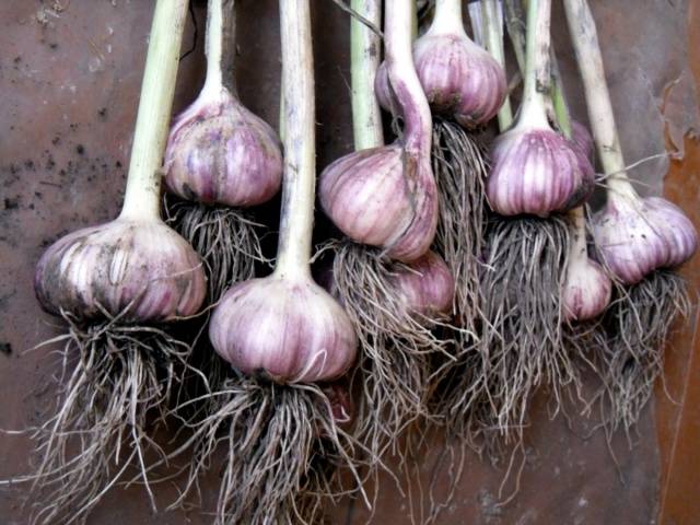 Es kommt also vor, dass der Frost plötzlich einsetzt und der Knoblauch noch nicht vor dem Winter gepflanzt wurde. In diesem Fall können Sie das Wurzelsystem stimulieren, indem Sie die Zähne einige Stunden lang in einer feuchten Lösung einweichen und sie dann mit einer Batterie trocknen. Nach ein paar Tagen erscheinen an solchen Zähnen Wurzelrudimente, die sogar in gefrorenen Boden gepflanzt werden können.