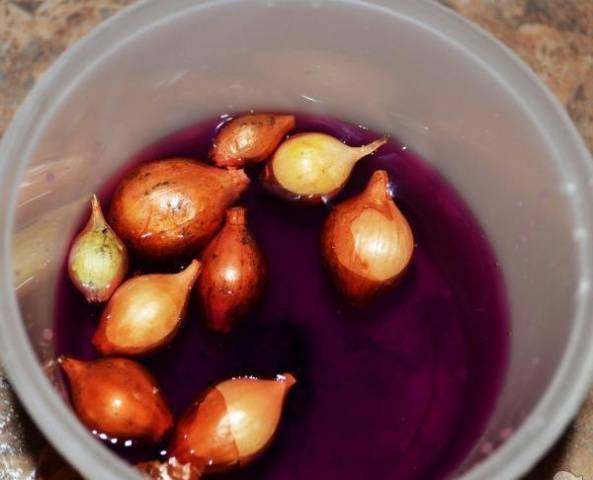 - Durch die Desinfektion werden Schädlingslarven, Pilzsporen und Viren, die für das Auge nicht sichtbar sind, von der Oberfläche der Zwiebeln entfernt. Die Sevka-Verarbeitung sollte aus zwei Schritten bestehen. Der erste Schritt besteht darin, die Sämlinge 3-4 Stunden in Salzwasser zu legen. Die Salzkonzentration sollte 1 EL betragen. l. für 1 Liter sauberes Wasser. Nach der Salzlösung muss das Pflanzenmaterial gewaschen und 2 Stunden in einer Lösung aus Kaliumpermanganat oder Kupfersulfat eingeweicht werden.