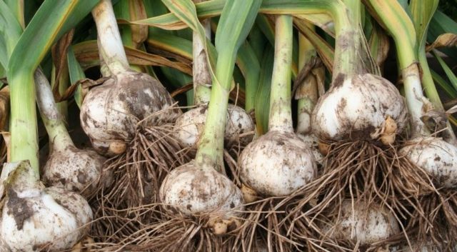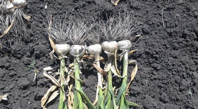 Es gibt auch lange Prozesse, die sich vom Kopf bis zu 10 cm erstrecken. Daher wird Rocambol sorgfältig gegraben, um keine kleinen Zwiebeln zu verlieren. Sie werden im folgenden Frühjahr gepflanzt und produzieren große einzahnige Zwiebeln mit einem Gewicht von 45 bis 100 g. Die Köpfe ähneln gewöhnlichen, abgerundeten, flachen Zwiebeln, die mit trockenen weißen Schuppen bedeckt sind.