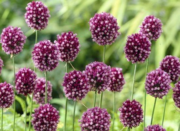 Im Juni bildet eine 2 Jahre alte Pflanze einen Pfeil von 1 bis 1,5 m mit einem hellen kugelförmigen Blütenstand aus sterilen, lila, glockenförmigen Blüten. Zuerst wächst der Pfeil wie jeder Winterknoblauch spiralförmig und richtet sich dann gerade aus. Löschen Schütze erhöht nicht das Gewicht der Zähne, betrifft aber eine größere Anzahl von Kindern. Wenn es keinen Zweck gibt, die Kultur zu züchten, bleiben die Blütenstiele des Rocambol-Knoblauchs, wie auf dem Foto zu sehen, übrig, um den Garten zu dekorieren.
