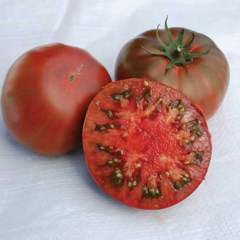 Amerikanische Sorte schwarzer Tomaten. Die Vorläufer waren die folgenden Arten: Strawberry Tiger und Bascubleu. Die Büsche sind 1,8 m hoch. Tomaten werden in den Beeten und im Gewächshaus angebaut. Erfordert das rechtzeitige Zusammenbinden von Trieben und Kneifen.