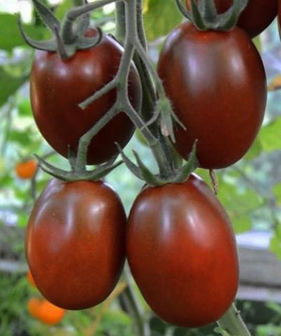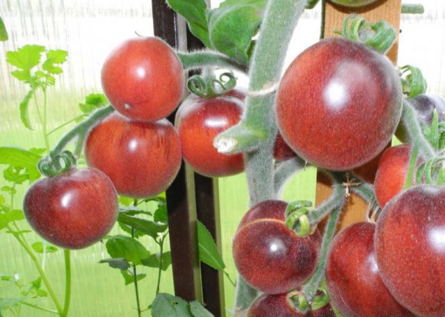 Eine ertragreiche dunkelfruchtige Sorte. Tomaten sind klein. Die Form der Frucht ist oval. Auf jeder Buchse werden 10 bis 20 Bürsten gebildet. Der Ertrag pro Pflanze beträgt 5 kg. Die Früchte eignen sich zum Einmachen, Verarbeiten. Es ist am besten, Gemüse frisch zu essen.