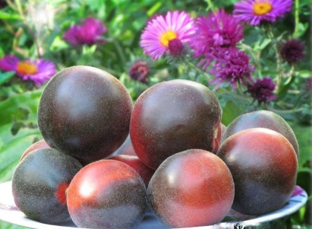 - Die Tomaten sind gerundet, die Oberfläche ist glatt, die Farbe ist dunkelblau.
