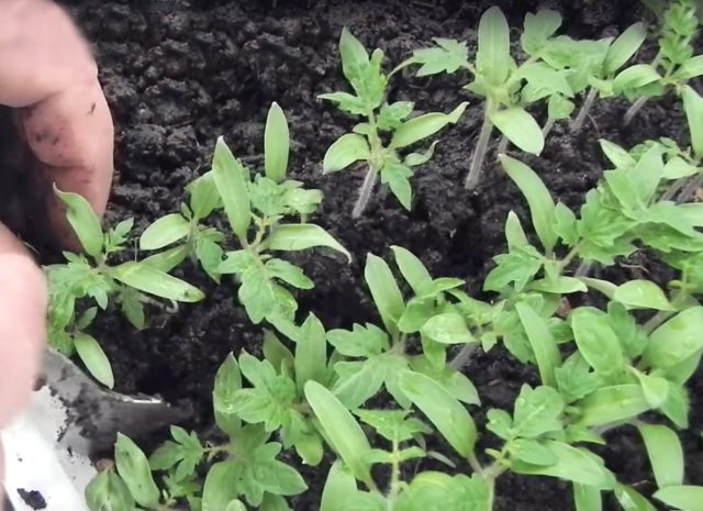 Sämlinge von Tomaten der Sorte Alpha werden kompakt, so dass sie nicht in separate Behälter, sondern in einen geräumigeren allgemeinen Behälter eintauchen können. Der Tauchgang wird nach dem Beginn des Auftretens des dritten echten Blattes durchgeführt. Die ersten beiden Keimblattblätter werden nicht berücksichtigt.
