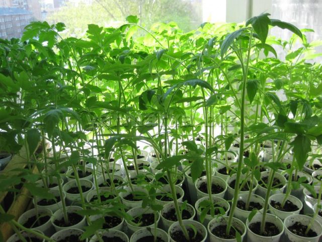 Ein Erwachsener gilt im Alter von 60 Tagen als Tomatensämling der Sorte Love F1. Zu diesem Zeitpunkt können bei ausreichender Ernährung bereits die ersten Knospen auf den Büschen erscheinen. Die Qualität zeigt sich in der dunklen Farbe des Laubes, den kurzen Abständen zwischen den Nebenhöhlen. Bei ausreichender Beleuchtung wachsen die Tomatensämlinge genau so Lyubov F1. Wenn die Beleuchtung zu schlecht ist, dehnen sich die Pflanzen aus und werden blass. Es wird schwieriger für sie, an der frischen Luft Wurzeln zu schlagen.