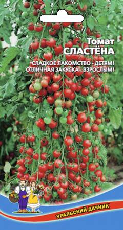 Im Gegensatz zu Slastena, einer Sorte, ist Nastena-Slastena bereits ein Hybrid, wie das F1-Symbol zeigt. Die Tomate ist früh reif, die Früchte reifen in 95-105 Tagen. Die Tomate gehört zu den unbestimmten hohen Pflanzen der Kirschart.