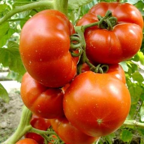 - Die Form der Tomaten ist ziemlich normal - gerundet, leicht abgeflacht, mit üppigen Falten in der Nähe des Stiels.