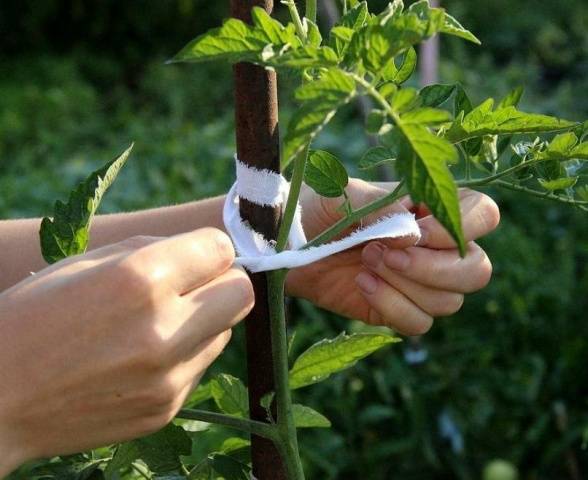 - Der Gärtner muss den Rest der Stiefsöhne während des gesamten Stadiums der Tomatenentwicklung entfernen. Es ist besser, dies am Morgen zu tun, am Vorabend der reichlichen Bewässerung der Betten.