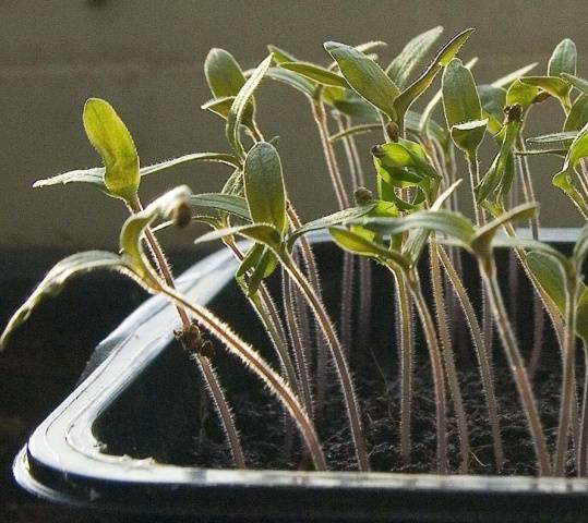 - Nach einer Woche sollten die Tomatensämlinge sprießen, dann wird der Deckel entfernt und der Behälter wird an einen kühleren (20-22 Grad) und hellen Ort gestellt.