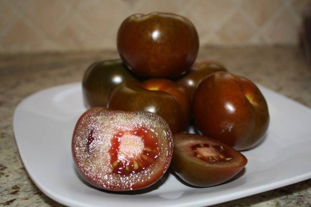 Die Sorte Viagra erhielt ihren Namen aufgrund ihrer aphrodisierenden Eigenschaften. Die Zusammensetzung der Frucht enthält Leukopin, das eine verjüngende Wirkung hat, Vitamine, Spurenelemente und Antioxidantien. Anthocyane, die für die dunkle Farbe von Tomaten verantwortlich sind, hemmen die Entwicklung von Krebs und Herz-Kreislauf-Erkrankungen.