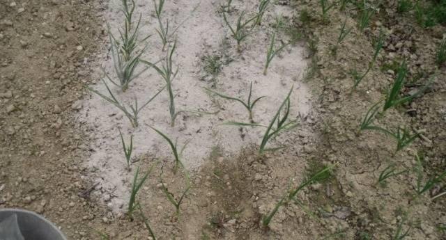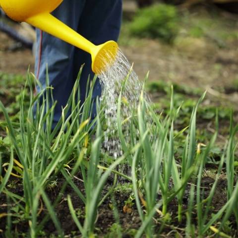 Verdünnen Sie es im Verhältnis 1:10 und gießen Sie die Pflanzen in der Nähe der Wurzeln, wobei Sie versuchen, die Blätter nicht zu verletzen, um Verbrennungen zu vermeiden. Wenn Sie andere Nährstoffe hinzufügen möchten, können Sie den Boden um die Knoblauchbüsche mit Holzasche bestreuen und mit Wasser darüber streuen.