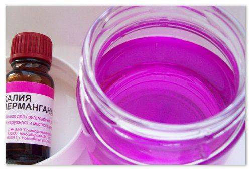 Zur Desinfektion von Auberginensamen ist eine Lösung von Kaliumpermanganat in einer Menge von 1 g Mangan pro 100 g Wasser geeignet. Das heißt, die Lösung muss stark genug sein und einen dunkelvioletten Farbton haben.