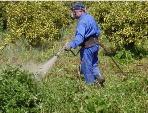 Wenn Sie einen Bereich mit Herbiziden behandeln, müssen Sie persönliche Schutzausrüstung verwenden und Vorsichtsmaßnahmen treffen.