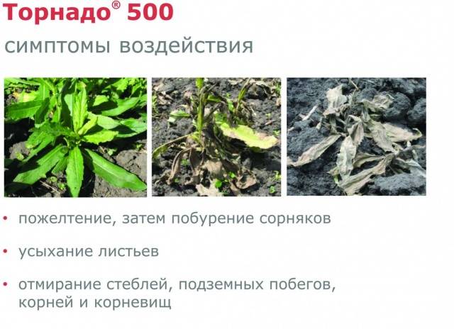 Unkraut wird in der Regel einmal pro Saison mit dem Tornado-Präparat zerstört: vor dem Pflanzen oder nach der Ernte.