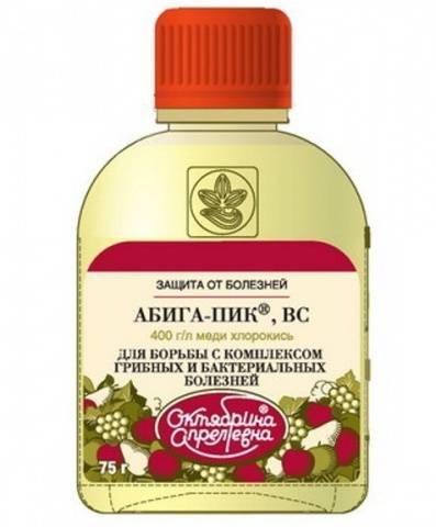 Abiga Peak ist ein Kontaktmittel zur Bekämpfung von Pilzkrankheiten. Der Hauptbestandteil des Arzneimittels ist Kupferoxychlorid. Sein Gehalt im Fungizid beträgt 400 g / l.