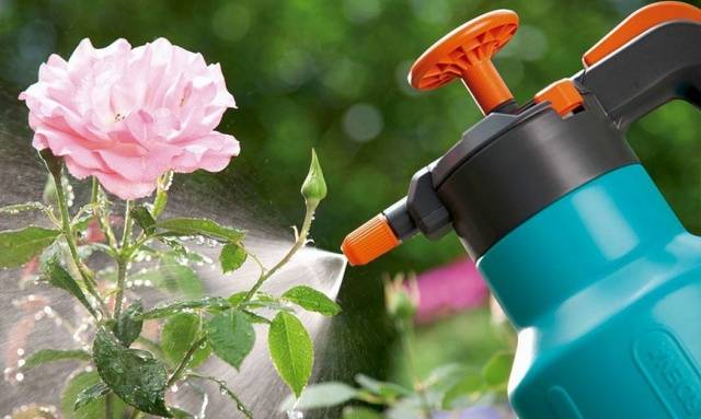 Zum Besprühen des Blumengartens wird gemäß der Gebrauchsanweisung eine Lösung des Fungizids Abiga Peak hergestellt, die 40 ml Suspension pro 10 Liter Wasser enthält. Pflanzen werden zweimal pro Saison gesprüht.