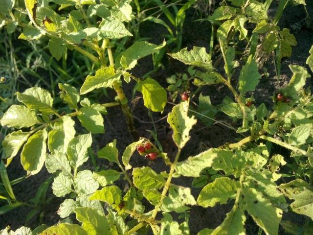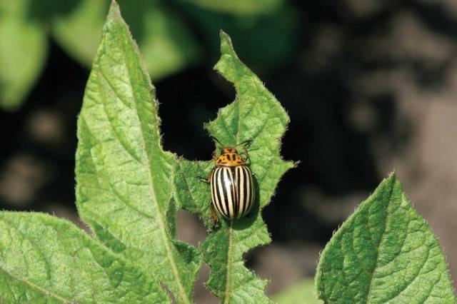 Der Kartoffelkäfer schädigt Kartoffeln und andere Nachtschattenkulturen. Das Insekt frisst Triebe, Blätter, Blütenstände und Wurzeln. Infolgedessen können sich Pflanzen nicht normal entwickeln und ihr Ertrag nimmt ab.