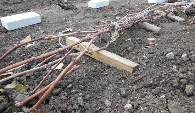 - Legen Sie die verbundenen Reben auf eine trockene Auskleidung aus Brettern oder Kunststoff und befestigen Sie sie mit Haken.