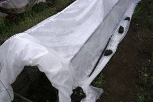 - Legen Sie niedrige Bögen an und bedecken Sie sie mit einem Film, so dass kleine Luftströme verbleiben. Der Abstand zwischen dem Film und dem Spandbond beträgt nicht mehr als 10 cm.