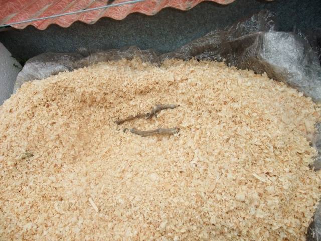 bedeckt mit trockenem Sägemehl oder trockenen Blättern, die vom Pilz behandelt wurden.