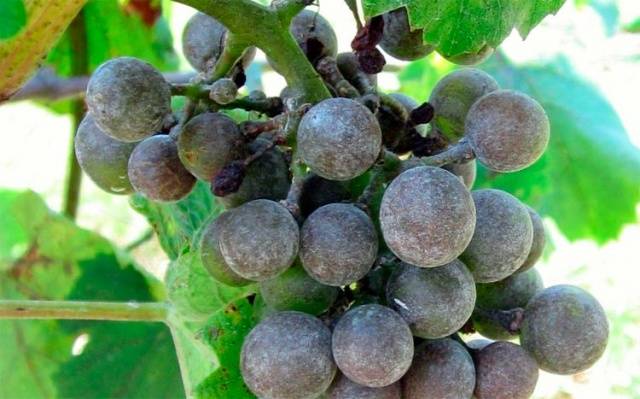 Krankheitssporen entwickeln sich bei hoher Luftfeuchtigkeit aktiv. Dadurch verlieren die Trauben Früchte, Blütenstände und Blätter. Wenn sie während der Fruchtbildung beschädigt werden, knacken und verrotten die Beeren.
