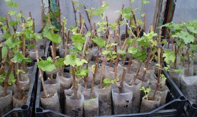 Ein Traubensämling wird vorsichtig in den Boden gelegt, mit Erde bedeckt und eine Stütze wird gelegt. Dann müssen Sie die Pflanze mit warmem Wasser gießen. Diese Pflanzmethode ist für die Sorte Rochefort sehr effektiv, da die Sämlinge schnell Wurzeln schlagen.
