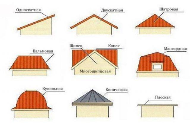 Um zu wissen, wie man mit eigenen Händen ein Dach auf einem Pavillon baut, muss man sich zunächst für seine Form entscheiden. Jeder Dachtyp hat ein Soja-Design von Sparren, das auf dem Foto durch Zeichnungen verschiedener Dächer dargestellt wird: