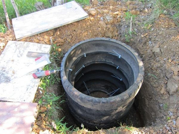 Der Bau einer Option aus Reifen nimmt viel weniger Zeit in Anspruch als der Bau eines Brunnens aus Betonringen oder das Auslegen mit Ziegeln. Darüber hinaus sind auch bei sehr großen Reifen keine schweren Maschinen erforderlich.