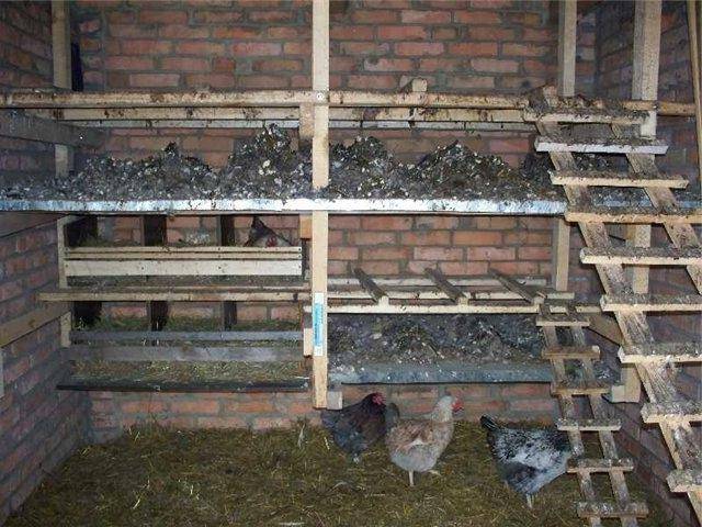 Die Länge der Balken sollte anhand der Anzahl der Vögel berechnet werden - für jedes Huhn 30 cm lang. Tabletts sollten direkt unter die Stange gestellt werden, damit sich die Vögel entlasten können.