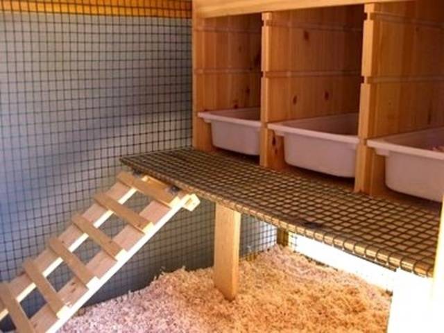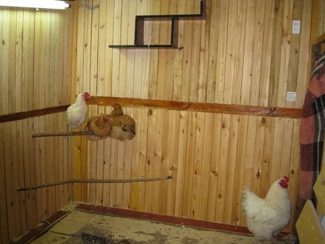 Um komfortable Bedingungen zu schaffen, wird ein Holzboden geschaffen, der sich mehrere Zentimeter über dem Boden erhebt. Es gilt als das wärmste und wird daher für das Geflügelstall verwendet.