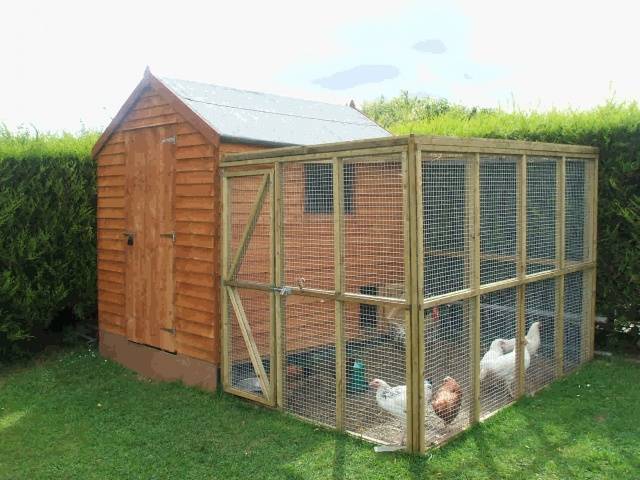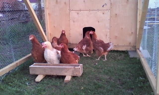 Damit sich die Hühner nicht im Hof verteilen, muss ein Hühnerstall mit einem mit einem Netz eingezäunten Spaziergang installiert werden. Seine Größe wird in Abhängigkeit von der Anzahl der Tiere berechnet. Das Fahrerlager ist möglicherweise überdacht oder hat überhaupt kein Dach. Ein Maschendrahtnetz oder ein Zaun wird als Zaun verwendet. Der Zaun ist um den Umfang herum und bei Bedarf von oben gebaut. Während des Spaziergangs sollte es auch eine Tür für den Eigentümer geben, damit das Territorium gereinigt werden kann.