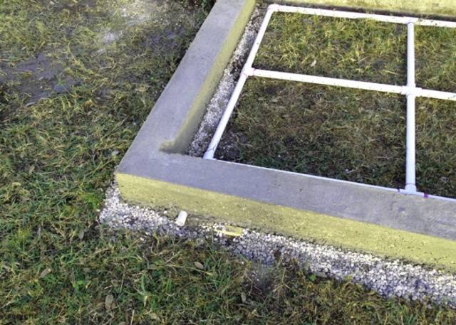 Ein Streifenfundament eignet sich für einen gemauerten Hühnerstall. Dadurch wird die Last gleichmäßig über den gesamten Umfang des Gebäudes verteilt. Gemäß dem Schema ist es notwendig, einen etwa 50 cm tiefen Graben vorzubereiten, seinen Boden auszurichten und ihn mit Sand zu bestreuen. Danach wird eine Schalung in den vorbereiteten Graben eingebaut und ein Verstärkungskäfig eingebaut, der vorab geschweißt wird. Beton wird in den Graben gegossen und sie warten darauf, dass er stärker wird.