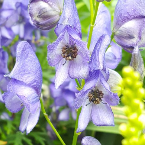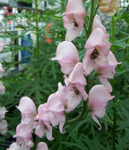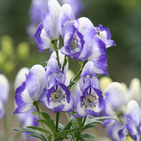 Die Blüte der Bicolor-Arten ist reichlich, die Stängel hängen unter dem Gewicht herab, daher ist für Aconitum ein Strumpfband erforderlich