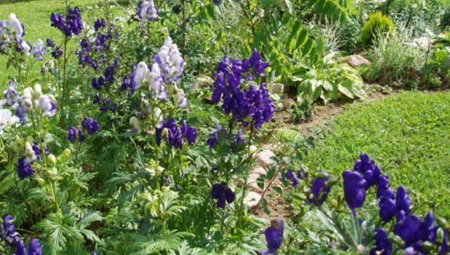 Hohe krautige Sträucher werden in fast allen Gestaltungsideen verwendet. Klobuchkovy Aconite ist nicht nur während der Blüte dekorativ, dank der Form der Blätter schmückt es den Standort für den Rest der Zeit. Die Kultur wird verwendet: