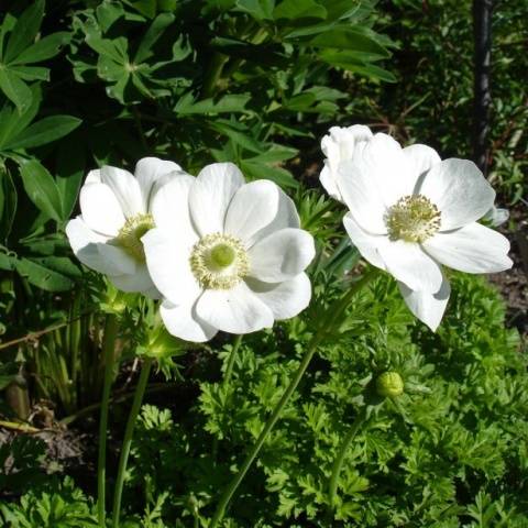 Die kronenförmige Anemone Bride de Caen muss im Halbschatten gepflanzt werden, da in der Sonne die weißen, zarten Blütenblätter ihre dekorative Wirkung verlieren und schnell verblassen.