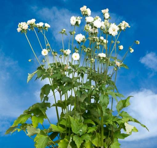 - Wirbelwind - am Ende des Sommers erscheinen halbgefüllte schneeweiße Blüten, Anemonen werden bis zu 100 cm groß;