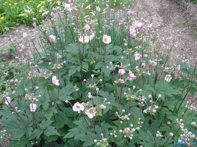 Passend und Pflege für Anemonen, die im Herbst blühen, verursachte keinen Ärger, verantwortlich für die Platzierung von Blumen. Am besten geeignet für sie ist ein windgeschützter Ort durch Gebäude, das Pflanzen von Sträuchern oder Bäumen mit einer durchbrochenen Krone. Herbstanemonen sind ziemlich groß, krautige Stauden können sie wahrscheinlich nicht bedecken.