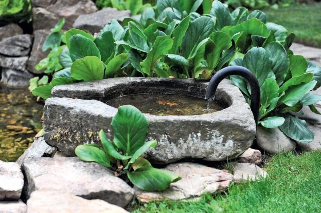 Viele Designer raten, Badan in Steingärten zu pflanzen