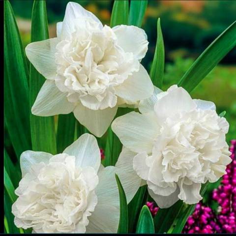 Die Sorte Crystal Fountain eignet sich am besten für einen weißen Garten. Weiße gefüllte Blüten stehen auf einem langen Stiel.