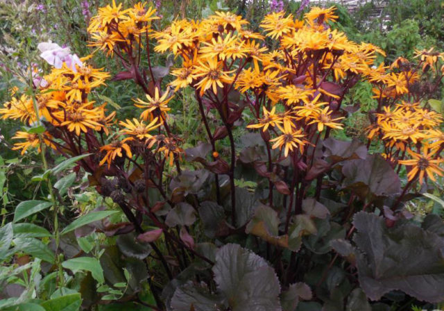 Buzulnik Othello zeichnet sich durch gute Gesundheit und Resistenz gegen Schädlinge und Krankheiten aus.