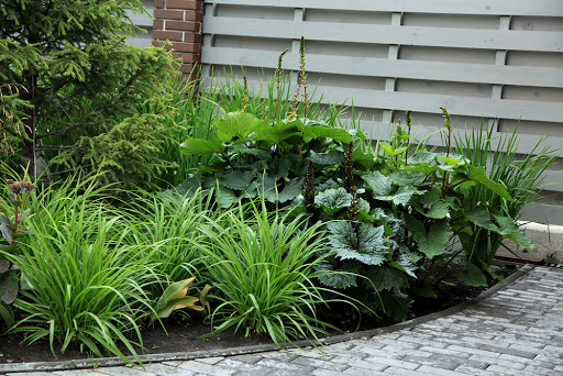 Buzulnik Vich pflanzt effektiv entlang von Wegen, Zäunen und verschiedenen Gebäuden