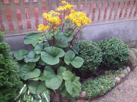 - Wie bei anderen Blumen ist es besser, den Buzulnik vor starken Winden zu schützen, indem eine Pflanze in der Nähe von Gebäuden oder einem Zaun, einer grünen Hecke, gepflanzt wird.