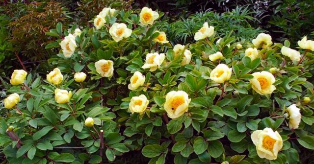 - Pfingstrose Mlokosevich - eine Hybride mit leuchtend gelben Knospen.